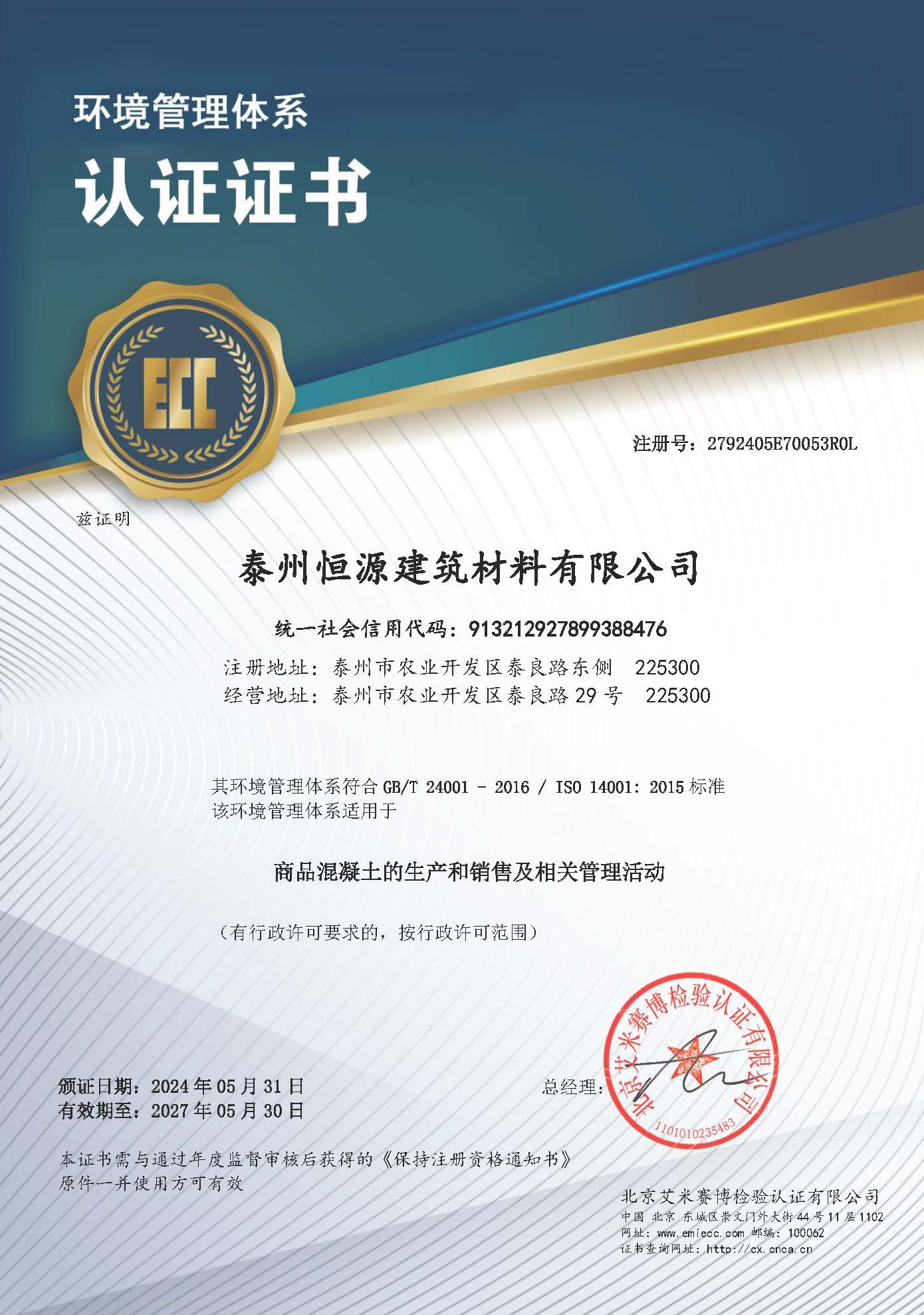 近期,泰州恒源建筑材料有限公司順利通過了GB/T14001 GB/T45001管理體系認(rèn)證并已獲得了相關(guān)證書。這標(biāo)志著我司已步入規(guī)范化、標(biāo)準(zhǔn)化、科學(xué)化的現(xiàn)代企業(yè)管理軌道,企業(yè)各項(xiàng)管理工作以及企業(yè)文化邁上了一個(gè)新的臺(tái)階。